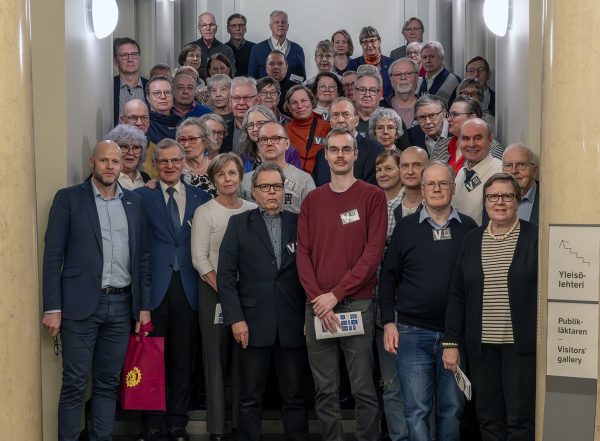 Seuraavaksi ohjelmassa oli ryhmäkuvan otto, jota varten oli runsaasti sopivia portaikkoja tarjolla. Vierailun lopuksi seurasimme puoli tuntia täysistuntoa.